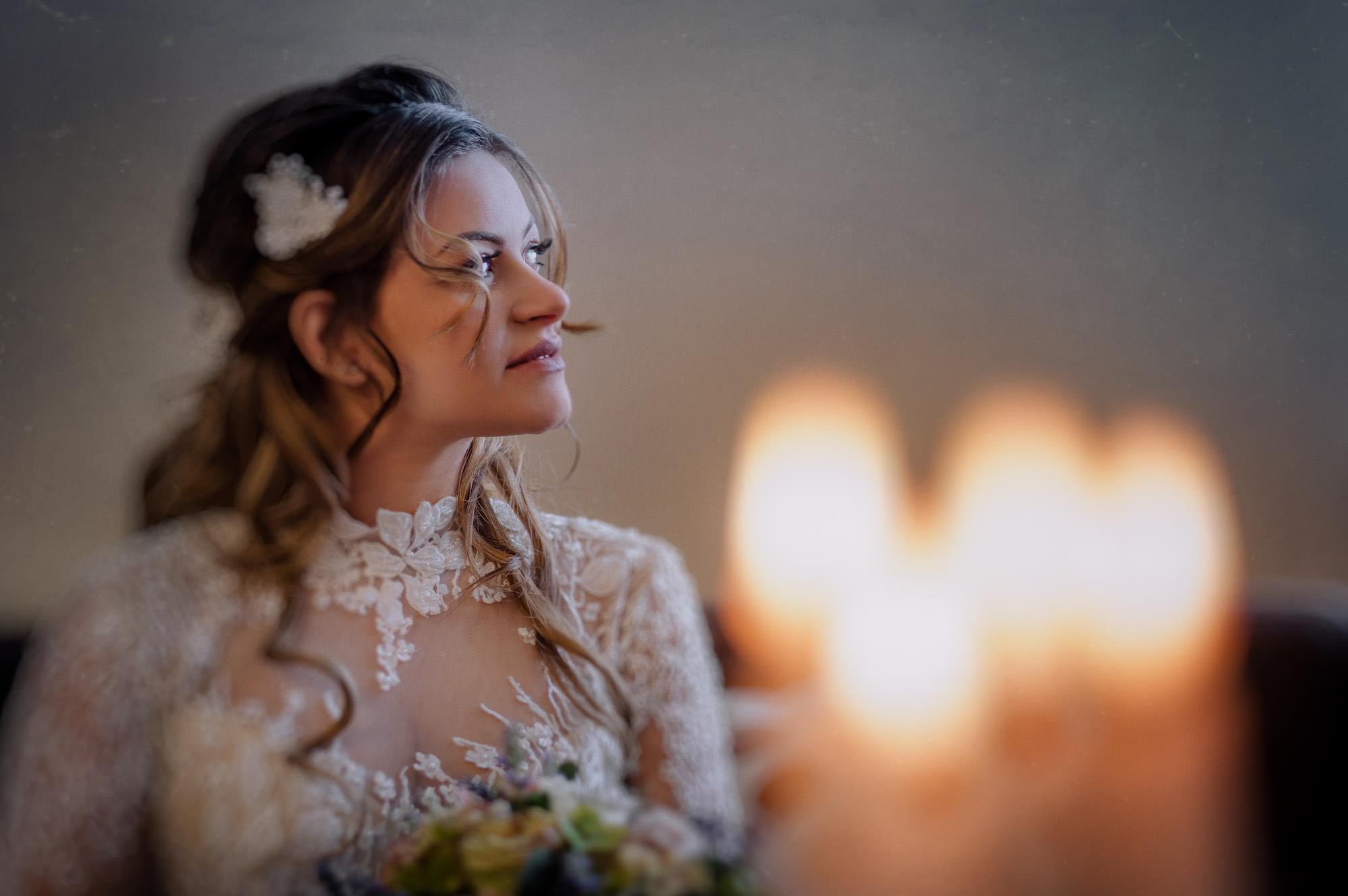 Infatti a casa dello sposo il camino era acceso mentre fuori impazzava una vera e propria mini bufera di neve. Impavidamente Rocco non si è tirato indietro per realizzare qualche bellissimo e intenso ritratto in questa atmosfera così particolare ed inaspettata.