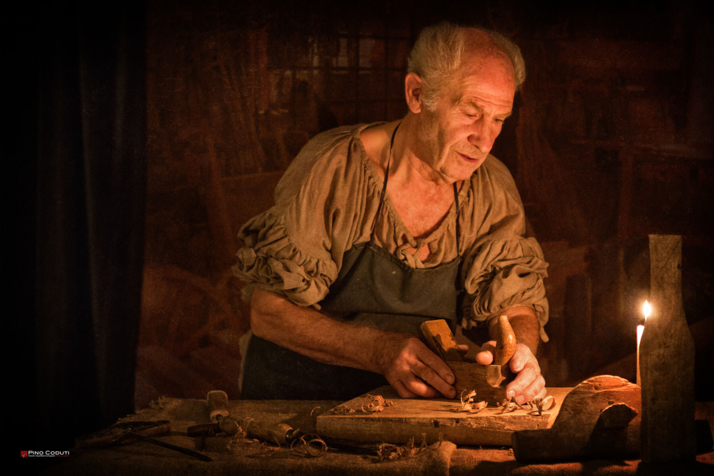 Le fotografie di questo progetto mirano a catturare la bellezza, la poesia e il romanticismo che la flebile luce di una candela dona ai soggetti immersi in una calda atmosfera seicentesca ed occupati in semplici attività quotidiane.