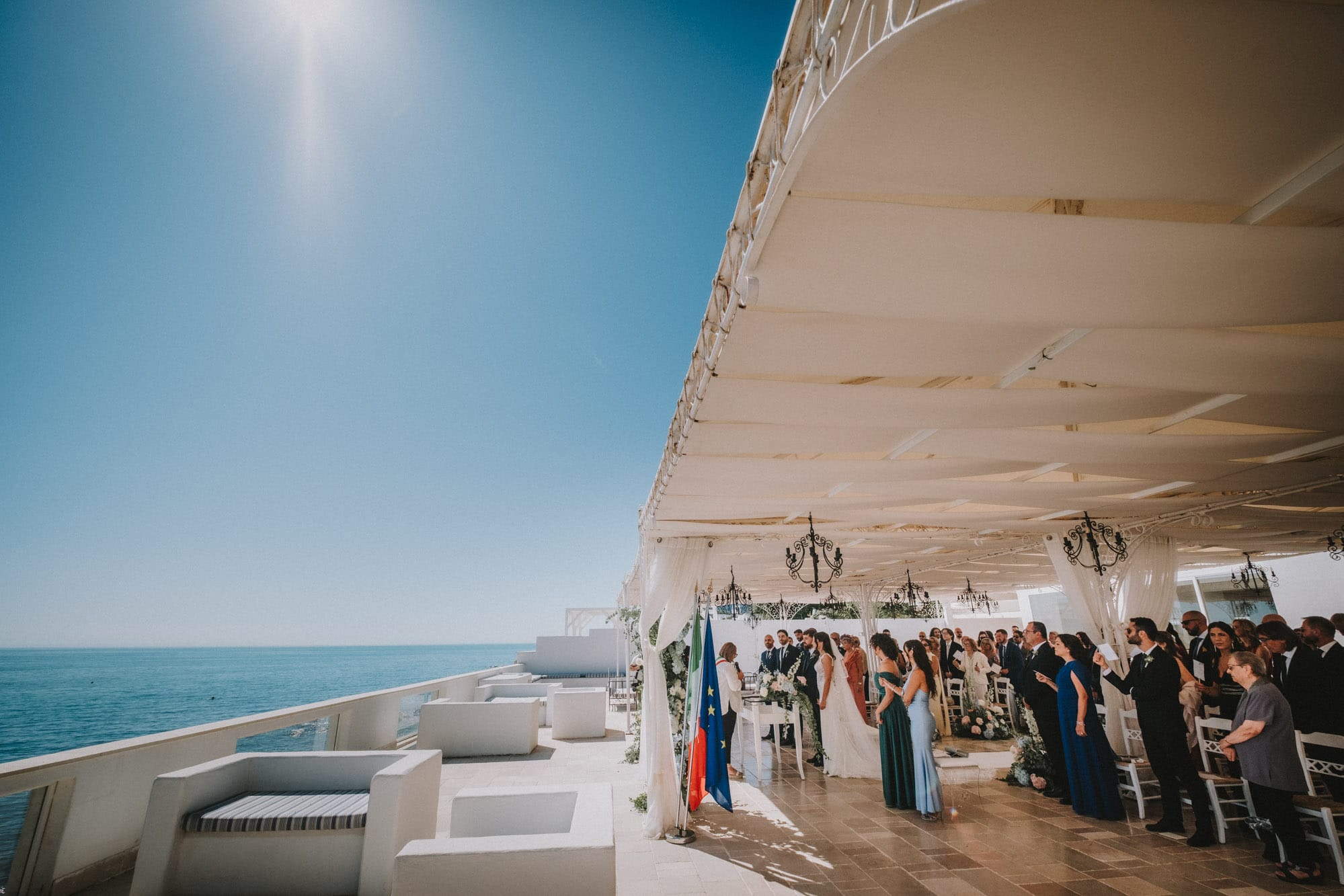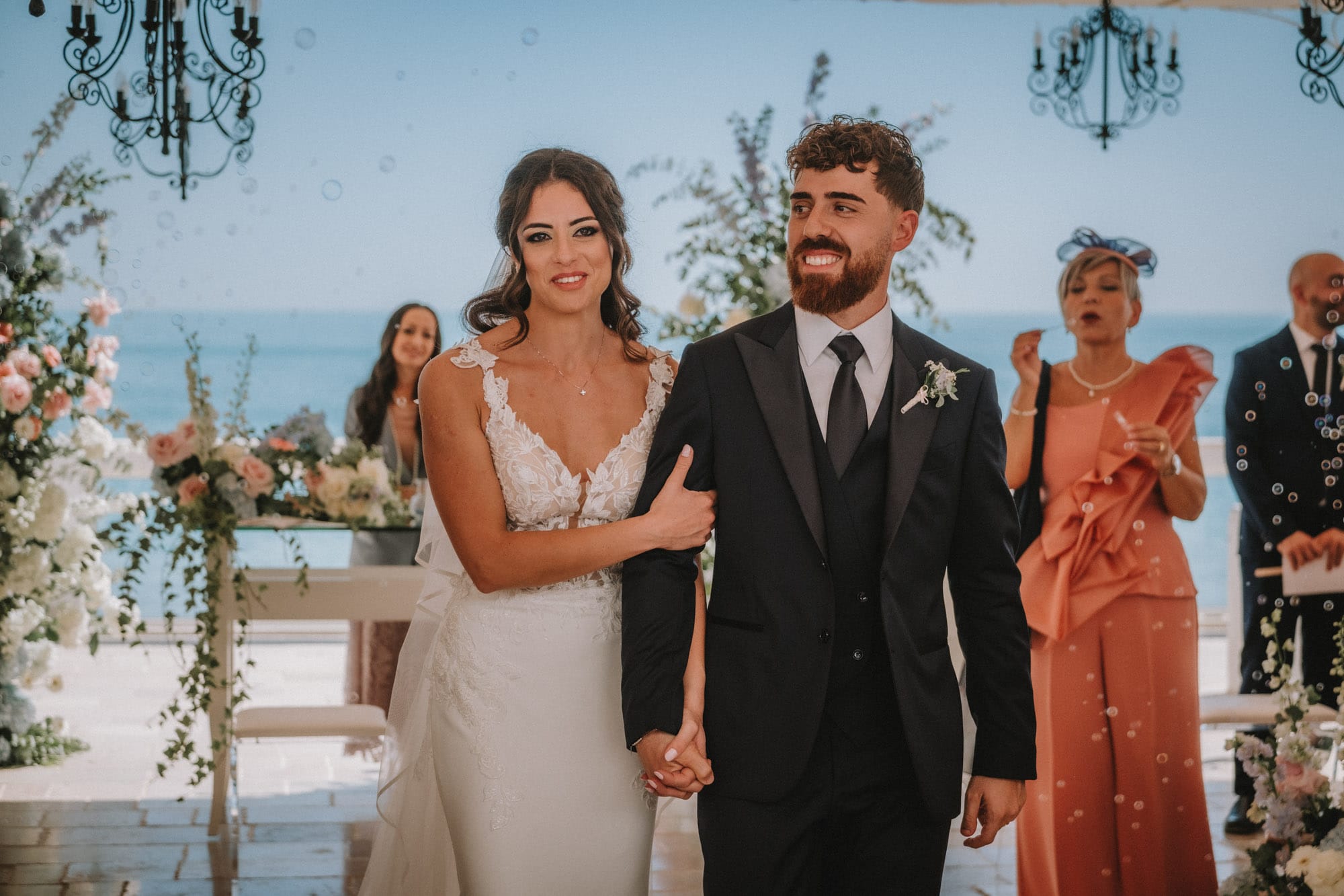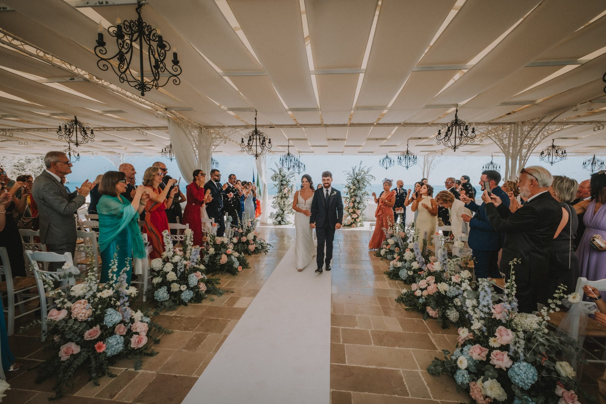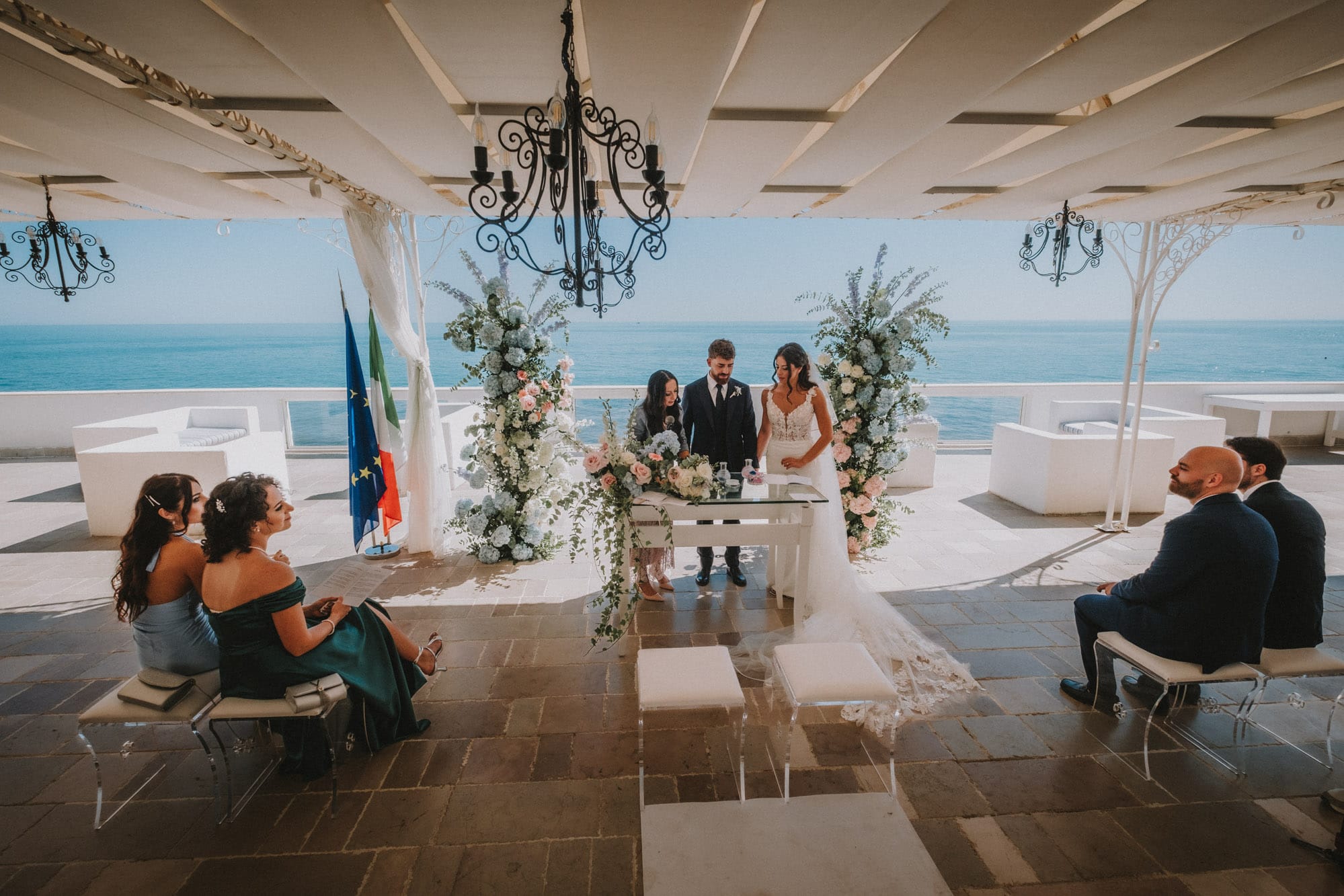 La cerimonia si è svolta presso “La Casa e il Mare”, a picco sul mare di Mattinata: un terrazzo di luce dove cielo e acqua sembrano fondersi in un unico respiro.