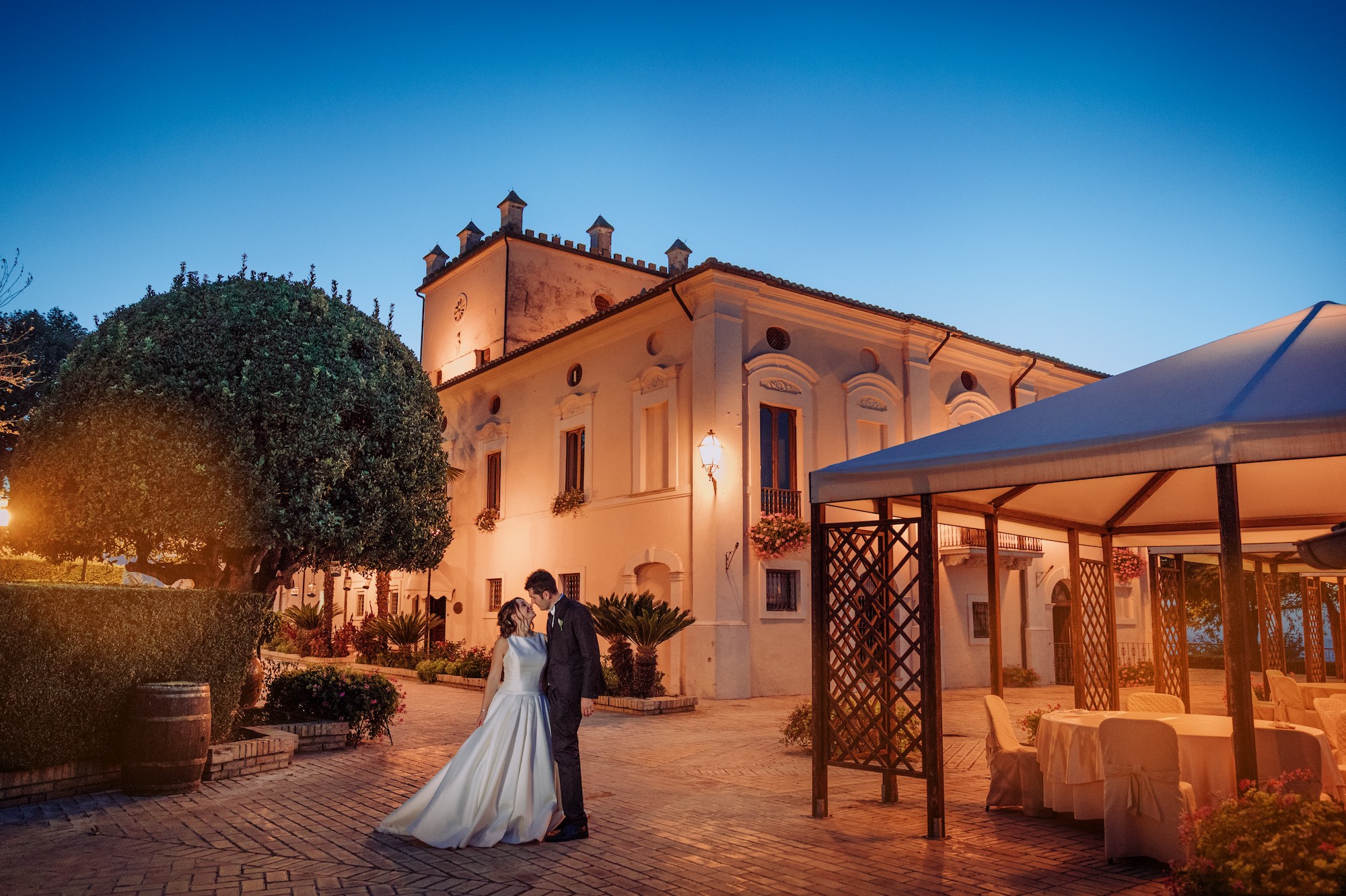 Gli sposi hanno poi scelto per il loro ricevimento la tenuta di Villa Chiara, letteralmente immersi tra i vigneti delle colline di Città Sant’Angelo.
