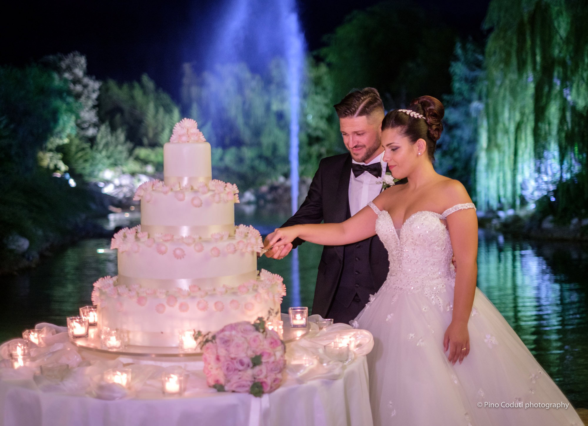 Torre Giulia allestisce ricevimenti di nozze sia all’aperto che all’interno. Il parco con ampi prati verdi ed il laghetto hanno fatto da scenario ai diversi scatti fotografici degli sposi.