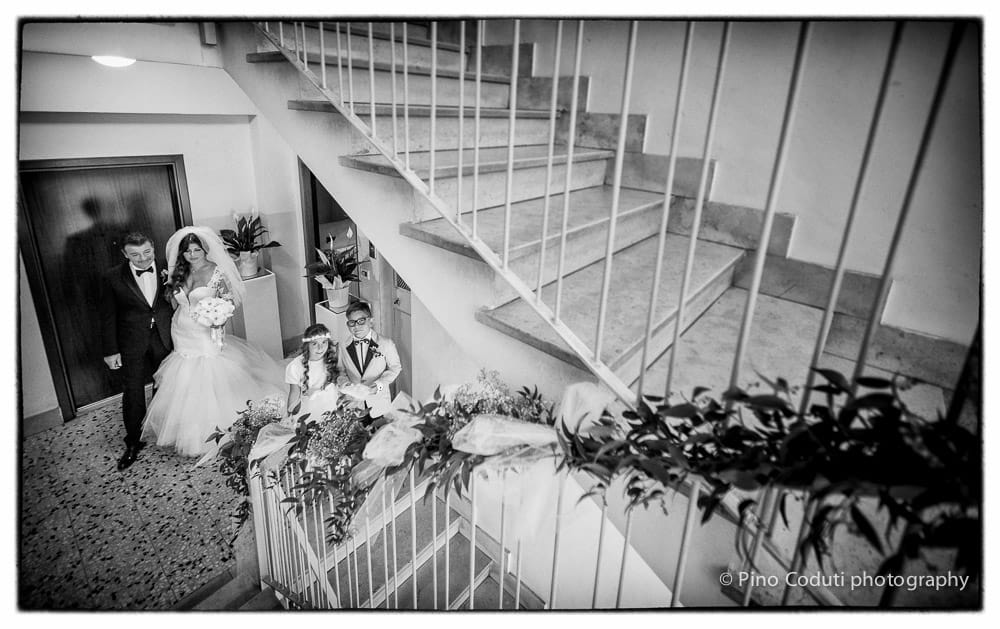 Questo wedding day straordinario è cominciato a Lucera con gli ultimi preparativi a casa di Roberto e proseguito a Foggia dove abbiamo fotografato Giovanna, decisamente una sposa solare intenta a curare gli ultimi dettagli prima di scendere emozionata le scale di casa.