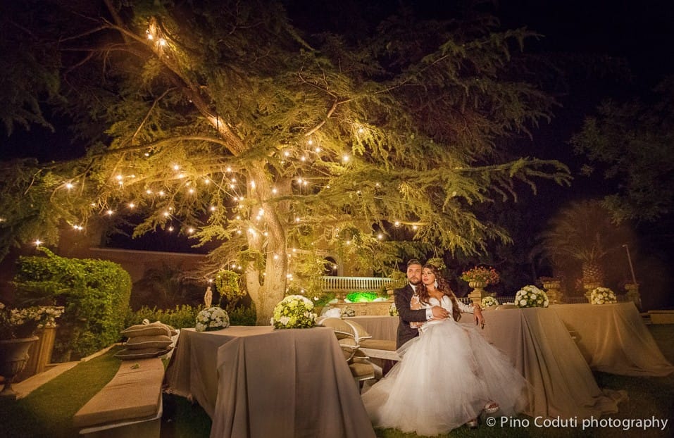 La splendida atmosfera ha accolto tutti al ricevimento nella tenuta di Villa Carafa nel Giardino Zen dove forme sinuose e i ricchi dettagli ricordano una fiaba da Le mille e una notte.