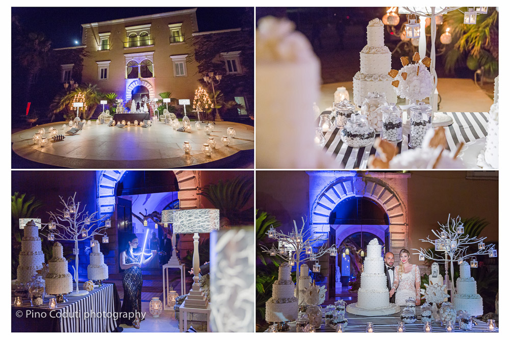 Gli sposi hanno poi ricevuto i loro ospiti presso Villa Carafa, una location che, come sempre, ha saputo incorniciare in maniera impeccabile e raffinata sia la cena che la festa che ne è poi seguita, fino alla magia del taglio torta accompagnato dalle note del violino.