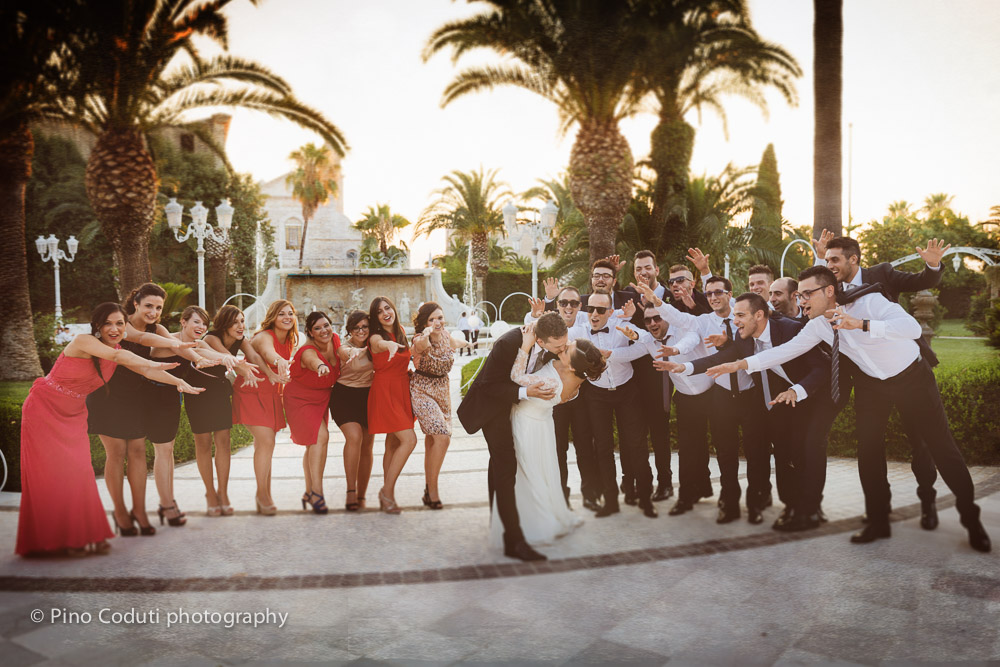 Tra decine di amici a fare da corona ed a gioire con gli sposi, un wedding-day divertente ed emozionante!
