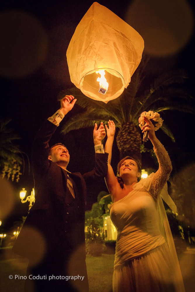 Grande atmosfera poi per il momento clou del ricevimento ovvero il taglio della torta nel prato. Tante prelibate dolcezze, centinaia di luci ed il lancio delle lanterne per quello che è stato il suggestivo suggello del grande giorno di questa splendida coppia.