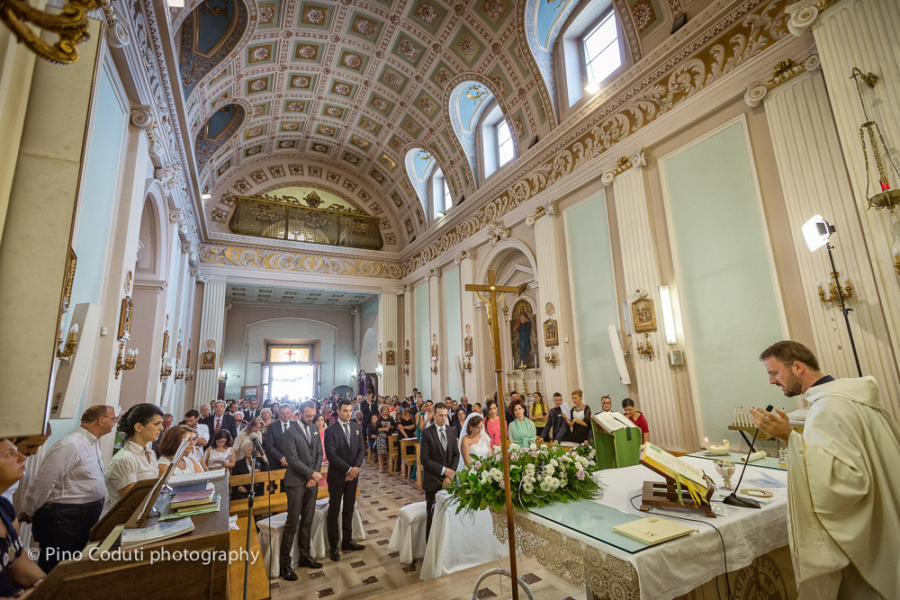 La cerimonia religiosa è stata celebrata nella chiesa Mediatrice a Troia. Questa chiesa fu costruita nel 1934 e si affaccia su Corso Regina Margherita, dove notoriamente ci sono edifici di significativo valore come il settecentesco Palazzo Tricarico e il cinquecentesco Palazzo d’Avalos, peraltro oggi sede del Municipio.