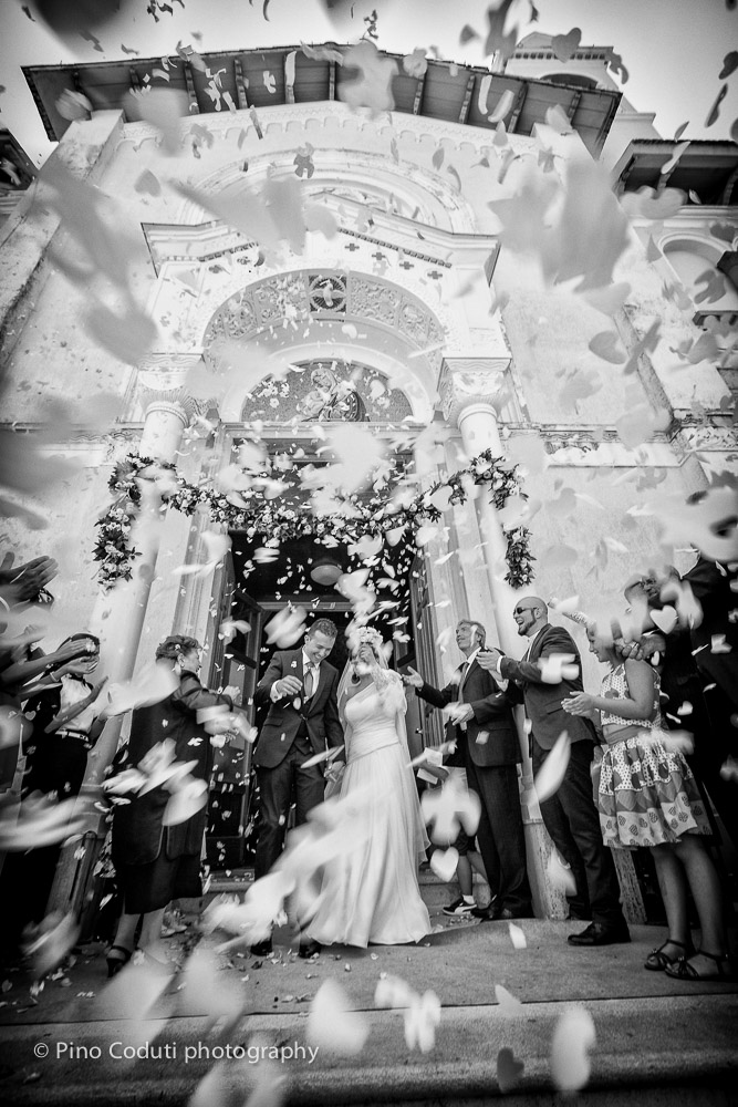 Immersi in un tripudio di coriandoli bianchi all’uscita di chiesa gli sposi sono stati accolti da tanti applausi e tantissimo affetto. Manifestazioni di gioia che si sono più volte ripetute durante il matrimonio al Nymphaeum, dove letteralmente amici e parenti hanno stretto Stefania e Ruggiero in mille abbracci.